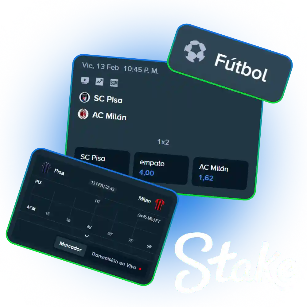Las apuestas de fútbol en Stake Argentina te permiten elegir resultados, goles y estadísticas de tus partidos favoritos. Podés jugar en torneos locales e internacionales, antes del inicio o en vivo mientras el partido está en marcha. El fútbol es el deporte más elegido por los usuarios porque se entiende rápido y ofrece muchas opciones de apuestas simples y combinadas. Como nuevo jugador tenés acceso al Bono de bienvenida del 200% para apuestas de fútbol, pensado para que pruebes la plataforma con mayor saldo y conozcas sus mercados de forma ordenada.