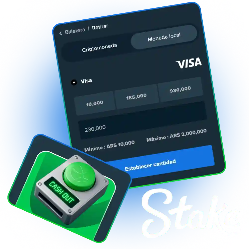 Podés solicitar un retiro en Argentina usando criptomonedas como Bitcoin, Ethereum, Litecoin y Tether, además de AstroPay, Visa y MasterCard directamente desde tu cuenta de juego en Stake Argentina. El monto mínimo de retiro es bajo y accesible, mientras que el máximo se adapta tanto a jugadores recreativos como a usuarios de alto volumen. Las criptomonedas se acreditan de forma rápida, mientras que las tarjetas y AstroPay siguen los tiempos habituales del proveedor. Podés elegir Bitcoin para transferencias veloces, USDT para montos estables, AstroPay para operar en pesos y tarjetas Visa o MasterCard para una mayor flexibilidad. Nuevos usuarios acceden a un Bono de bienvenida del 200% sobre el primer depósito, sujeto a términos.